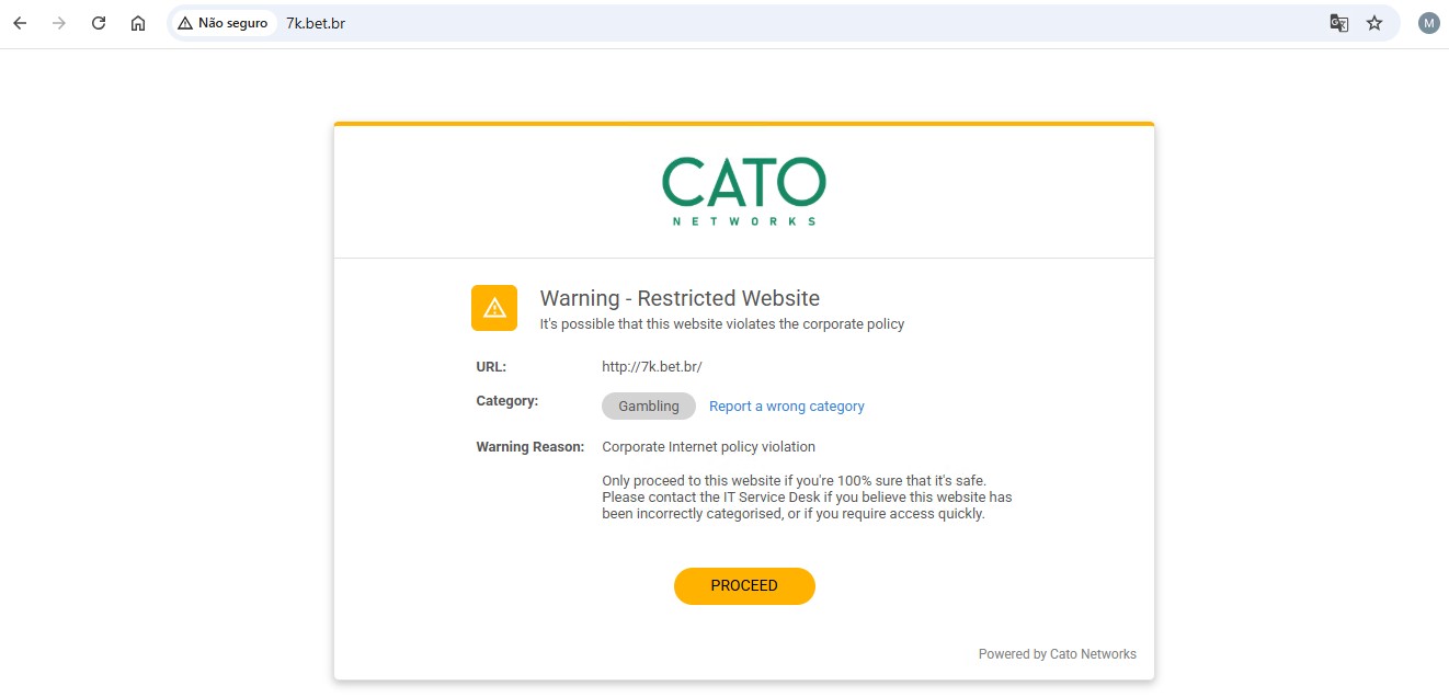 Soluções de IPS (Intrusion Prevention System) podem, entre várias funções, ter a de restringir tráfego de Internet no contexto de localização e categoria do conteúdo, como nos casos a seguir: Restrição por geo localização. Filtro de conteúdo via motor de busca Filtro de conteúdo via busca em Youtube. Neste projeto, utilizamos o recurso de IPS de uma solução SASE (Secure Access Service Edge), que monitora o tráfego de uma filial, no modo inline, conforme topologia a seguir. Para geolocalização, quando um usuário solicita acesso a um website ou aplicação hospedada em um país “proibido”, pelas políticas da empresa, seu acesso a tal conteúdo é negado. A solução verifica o local de hospedagem da aplicação, para casar sua política de acesso, que utiliza de regras de firewall. Assim, o tráfego outbound é filtrado, considerando a requisição a partir do POP (Point Of Presence) ao qual o cliente SASE do IPS está conectado. É possível também o filtro no sentido contrário (inbound), quando se deseja que nossa aplicação, rede ou recursos não sejam acessados a partir de tal país. A exceção à esta regra se dá quando o solicitante é um usuário SDP (Software-Defined Perimeter), uma situação típica de um colaborador que está uma região restrita, como Irã, Rússia, Coréia do Norte, ou outro país não permitido e deseja acessar um recurso da empresa onde trabalha. O recurso de geo localização não consegue efetuar o bloqueio se o website correspondente a um país “proibido” não está hospedado no mesmo. Para essa situação, podemos complementar com uma regra baseada em TLD (Top-Level Domain), como .ru, .ir ou .kp, por exemplo. A seguir, vemos o bloqueio à um website da Rússia, gerando 3 eventos na console da solução. O primeiro se refere à inspeção TLS que ocorre, por padrão, quando o tráfego passa pelo POP onde o client está conectado, para evitar a exposição do mesmo a conteúdos maliciosos. De forma subsequente, 2 conteúdos geram eventos de bloqueio: a página principal e o asset favicon, que costuma ser enviado separadamente do site principal, por questões de eficiência e organização do navegador. O bloqueio gera, então, a impossibilidade de acesso ao conteúdo, conforme exibido no navegador. Já o filtro de conteúdo via motor de busca atua no acesso de websites a partir de motor de busca (por exemplo, Google). Se o site está categorizado (na solução SASE) como conteúdo restrito, seu acesso, a partir do resultado de busca, não será permitido. Exemplos de categorias normalmente restritas: apostas, armas, álcool, nudez, seitas etc. No teste em questão, ao efetuar a busca no Google por “jogo do tigrinho”, resultados são sugeridos e exibem um conteúdo prévio, porém, ao clicar em seu link, recebemos o código ERR_EMPTY_RESPONSE. Atenção especial à URL, típica de um conteúdo originado em busca no Google. Um acesso direto, via navegador, a um website categorizado como “Apostas”, gera um tipo diferente de bloqueio, permitindo, inclusive, a revisão da categoria, pelo usuário. Para o bloqueio de vídeos do Youtube conforme as categorias citadas, devemos também configurar regras específicas de IPS. Este tipo de bloqueio costuma gerar altas taxas de falsos positivos e também falsos negativos, pois depende muito de uma análise contextual, a qual é comprometida quando não é feita por humanos. Vale lembrar da dificuldade maior de filtragem de vídeo em comparação com a filtragem de texto. No 1º exemplo, vemos à esquerda, um cliente SASE com o filtro aplicado, para a busca de “aposta” no Youtube. Logo acima dos vídeos sugeridos, o aviso “Alguns resultados foram removidos, pois o Modo restrito foi ativado por seu administrador de rede”. Mesmo assim, foi exibida um sugestão de mais de 3 horas de carteado. Na tela da direita, um usuário comum (mas utilizando a mesma conta de Youtube), efetua a mesma busca “aposta”, no mesmo horário, 23:13, recebendo sugestões diferentes. No 2º exemplo, o canal Bet Poker TV não exibe nenhum vídeo do tipo “Shorts”, ao cliente SASE, à esquerda), mas exibe tais vídeos ao usuário comum, à direita. No 3º exemplo, diferentes resultados para a busca “cerveja”, via Youtube, entre usuários com e sem a solução SASE.